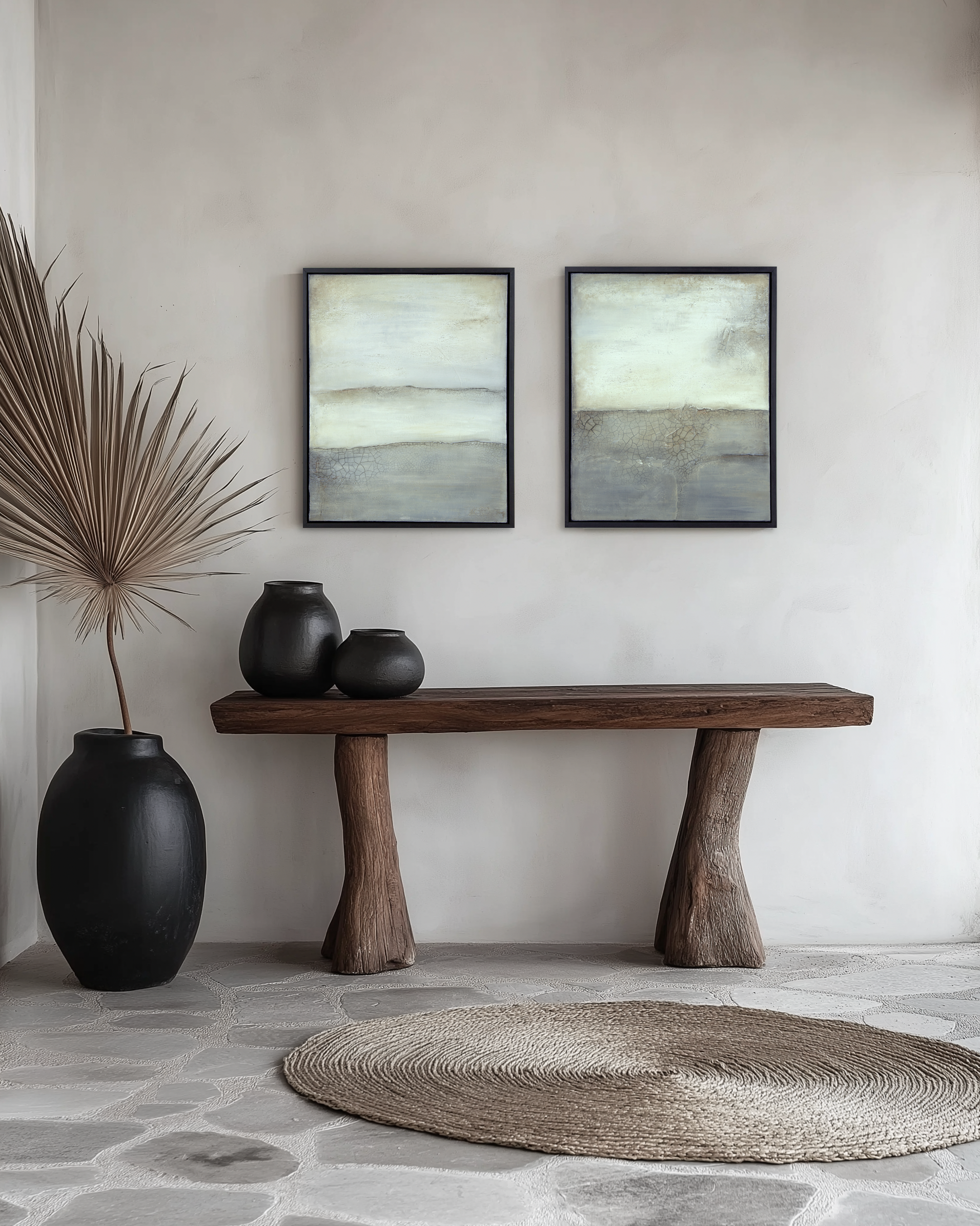 Inspired by the quiet elegance of Australian sandy shores, this minimal pair explores the subtle textures and tones found in coastal stones and sun-washed rocks. Soft hues of beige, grey and brown tones form a muted palette that mirrors nature’s restraint. Each piece is a gentle reflection of place – calm, grounded, and timeless.