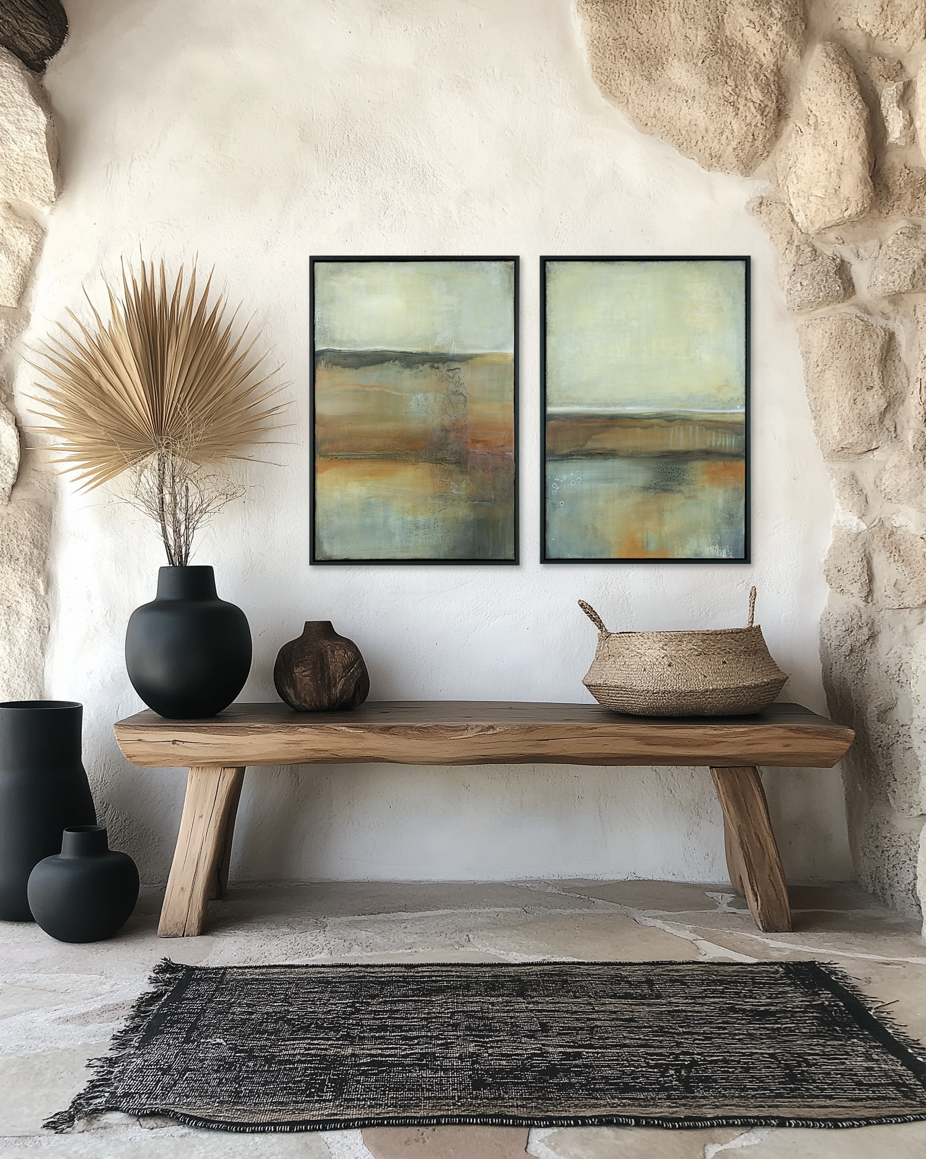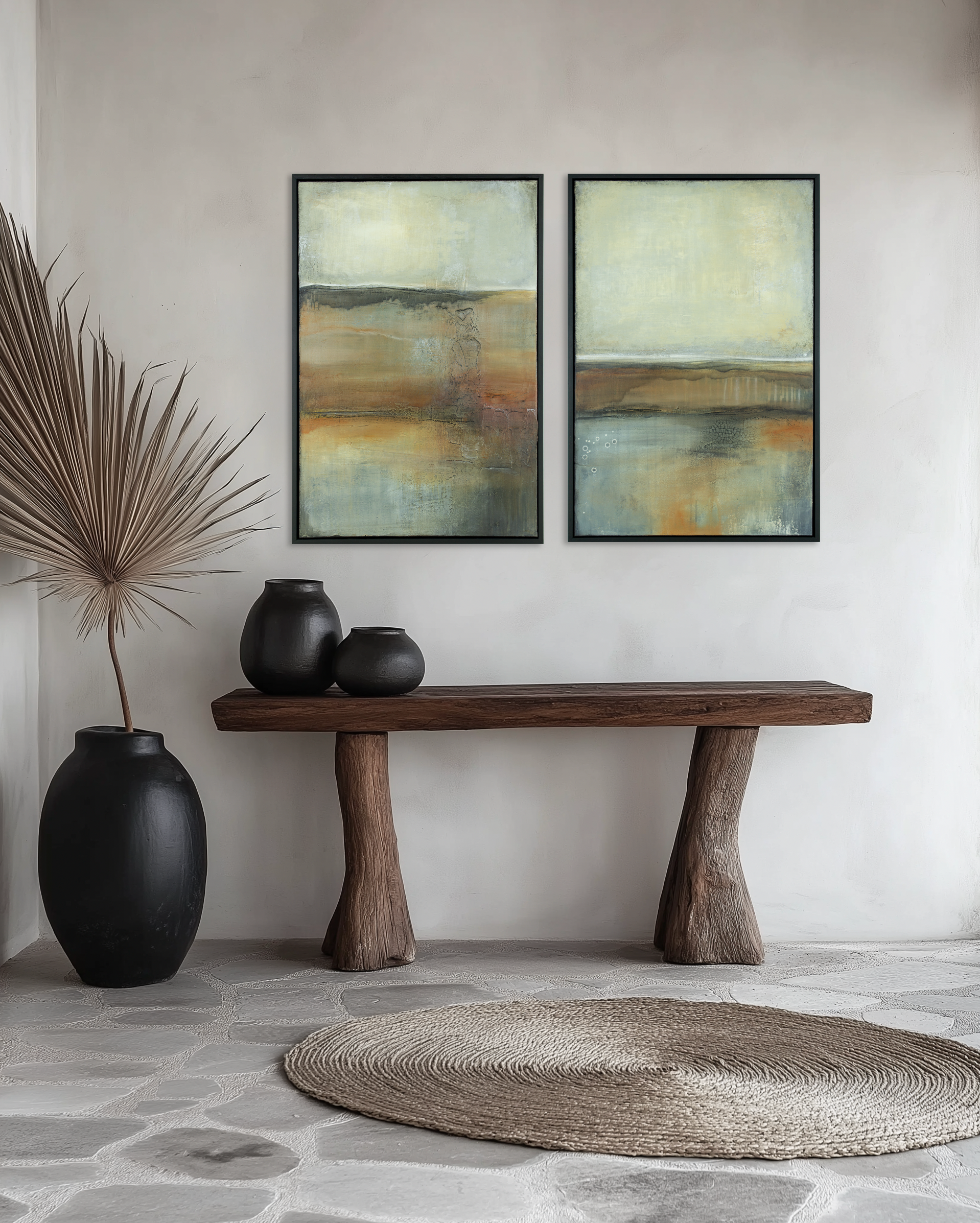 A quiet meditation on the land beneath our feet, this series draws from the rich textures of soil and stone with each piece echoing the grounded palette of the earth. The compositions unfold like abstracted landscapes, layered with natural rhythm and depth. Together, they offer a sense of stillness, presence, and connection to the raw, unspoken beauty of our terrain.