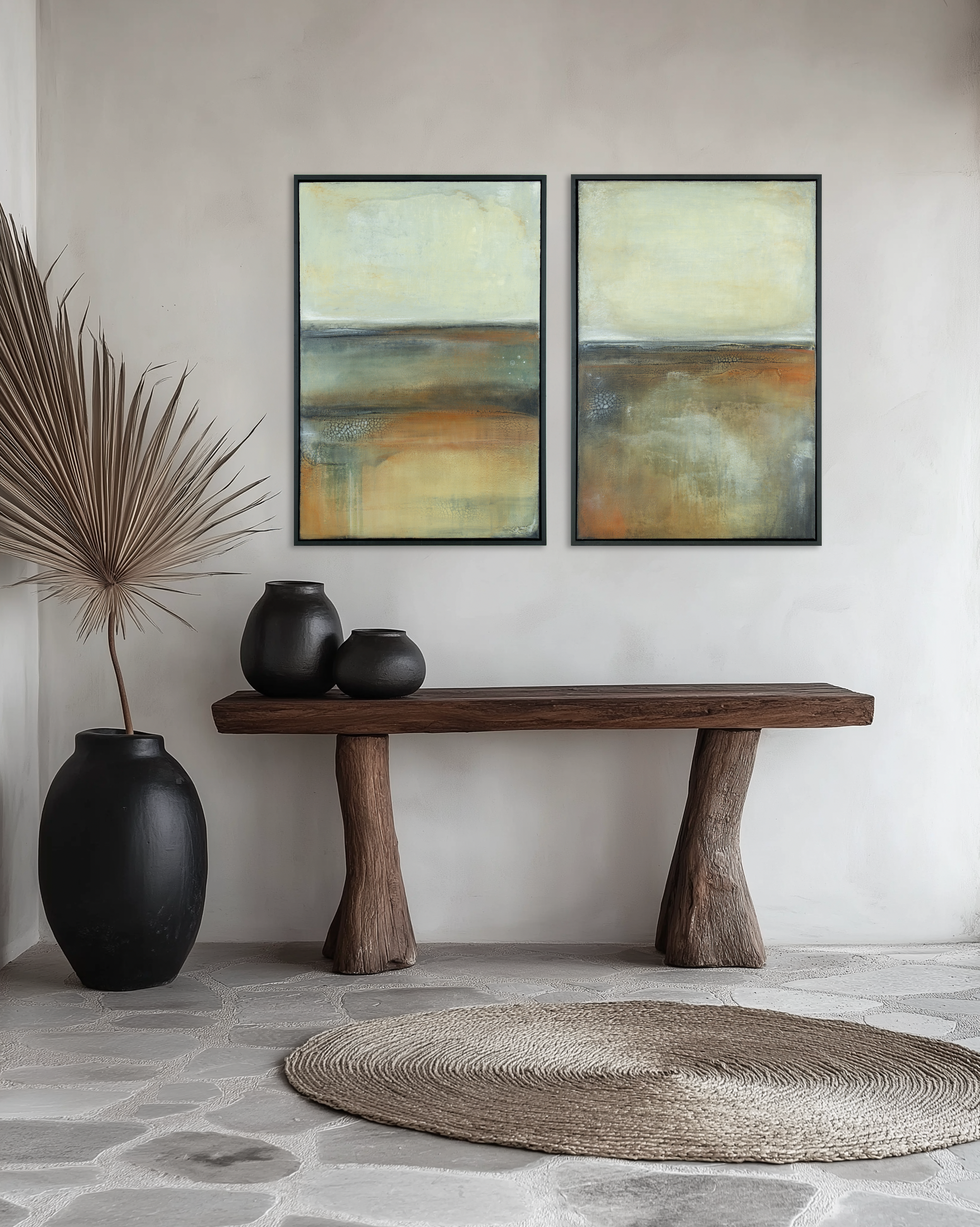 A quiet meditation on the land beneath our feet, this series draws from the rich textures of soil and stone with each piece echoing the grounded palette of the earth. The compositions unfold like abstracted landscapes, layered with natural rhythm and depth. Together, they offer a sense of stillness, presence, and connection to the raw, unspoken beauty of our terrain.