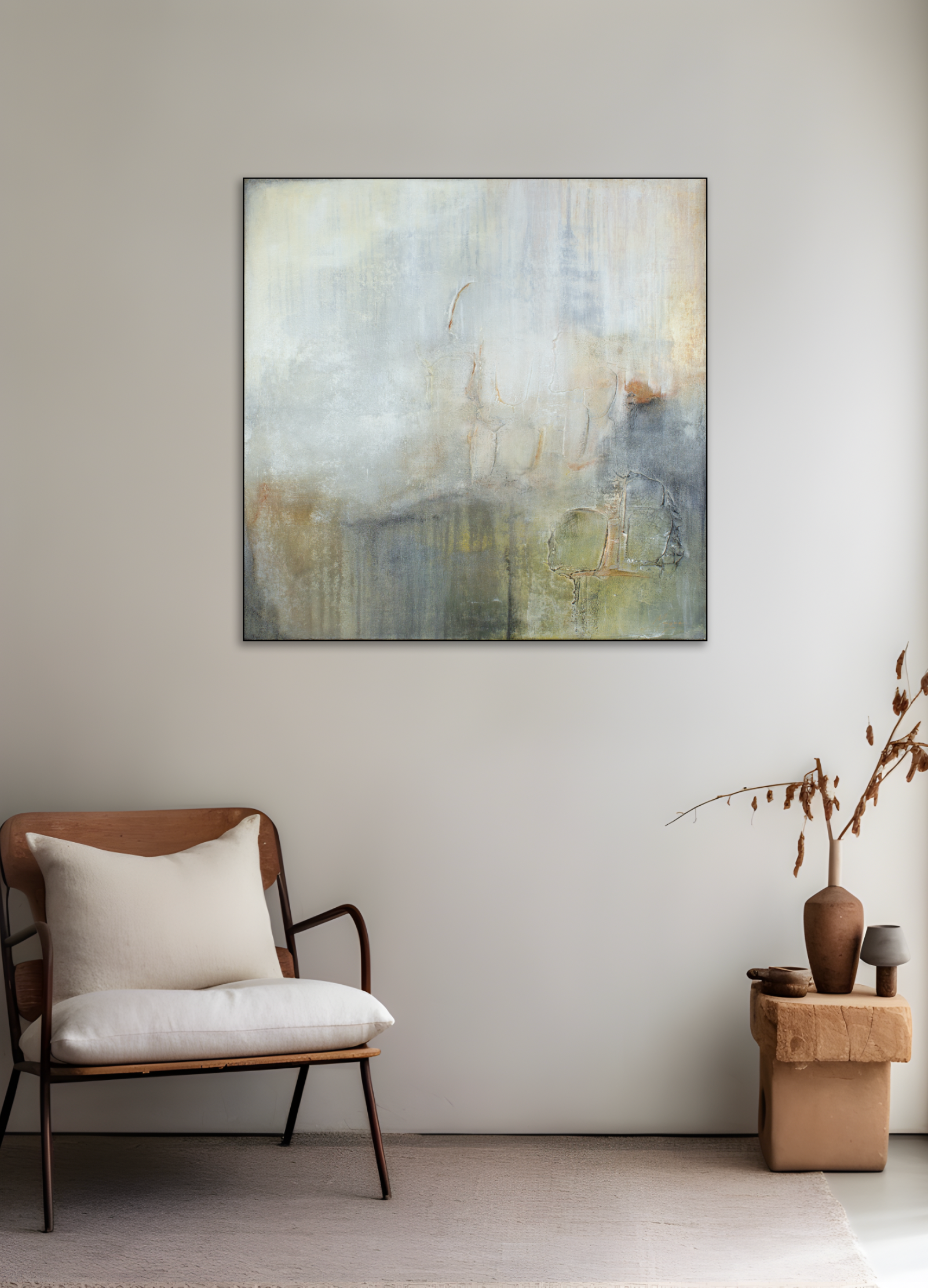 A captivating expression of texture, movement, and emotion, this original abstract painting draws inspiration from the raw beauty of Australian landscapes. Rich layers of earthy tones, soft washes, and organic marks invite viewers into a sensory journey that blurs the lines between nature and feeling.