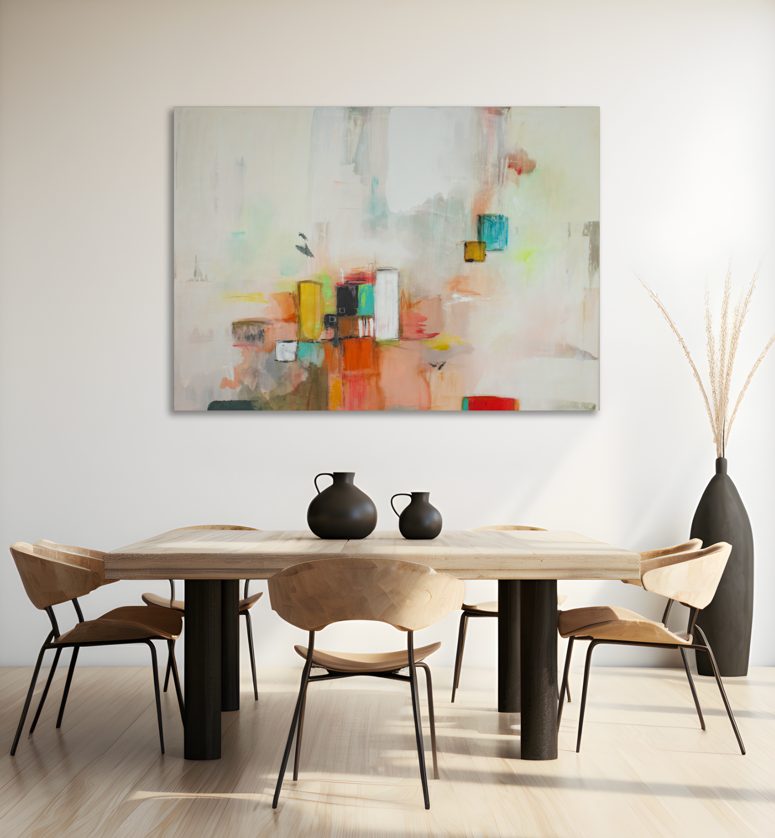 Capturing the energy of transformation, where expressive colours collide and intertwine to symbolise newfound freedom. Through spontaneous gestures and deliberate marks, the painting reveals the balance between intuition and purpose. Splashes of vibrant hues reflect the joy of self-discovery, while the intricate network of forms celebrates the journey beyond limitations and into a world filled with possibility.
